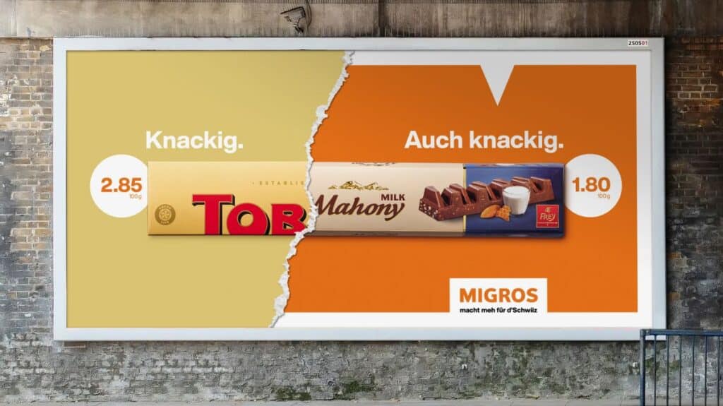 According to Rémy Müller, head of Marketing & Communication at Migros, the campaign is not just about highlighting price differences. It also aims to reinforce Migros’ brand positioning as a retailer that offers high-quality products at affordable prices. This dual focus on price and quality is a cornerstone of Migros’ brand identity and a key differentiator in the competitive retail market.
