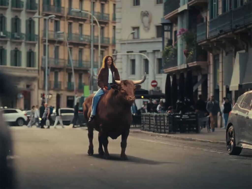- Strong visual metaphor – The bull ride is not ambiguous. It’s a storytelling vessel: power, control, audacity.