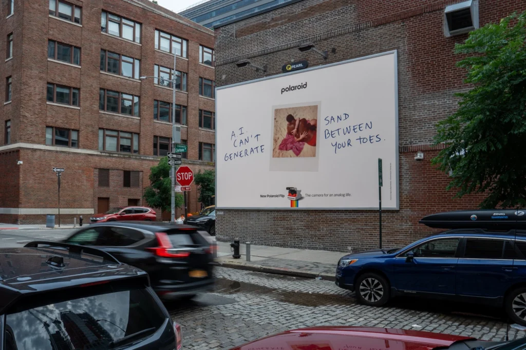 - Don’t shy away from critique or positioning: Polaroid’s campaign doesn’t simply sell Flip as a product; it positions the brand in opposition to a dominant cultural force (AI, screens, curated content). It’s risky but it creates space for differentiation. If you believe in your brand’s values, taking a stand can be part of your strategy.